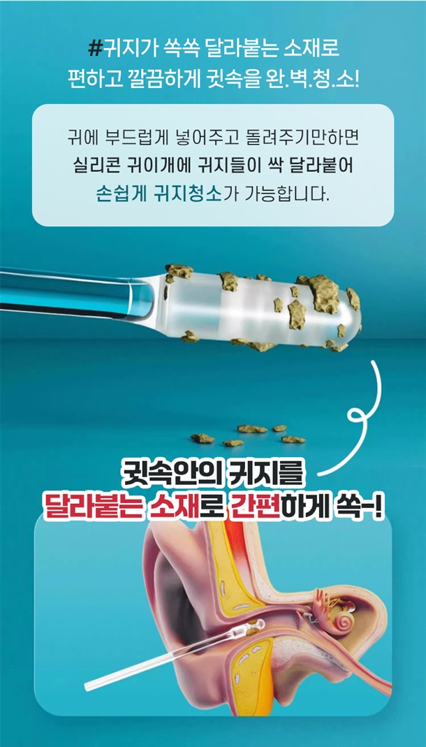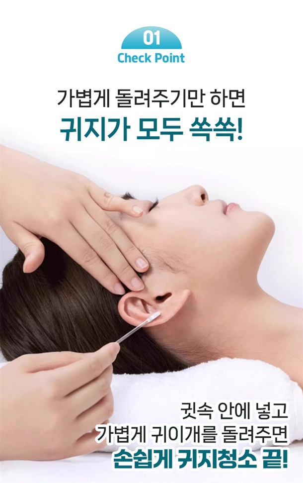 안쪽 귓밥까지 놓치지않고 싹~ 청소해줘요!