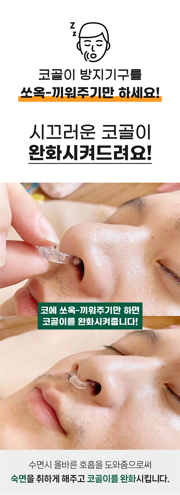 코골이 방지기구를 코에 끼워주기만 하면 수면시