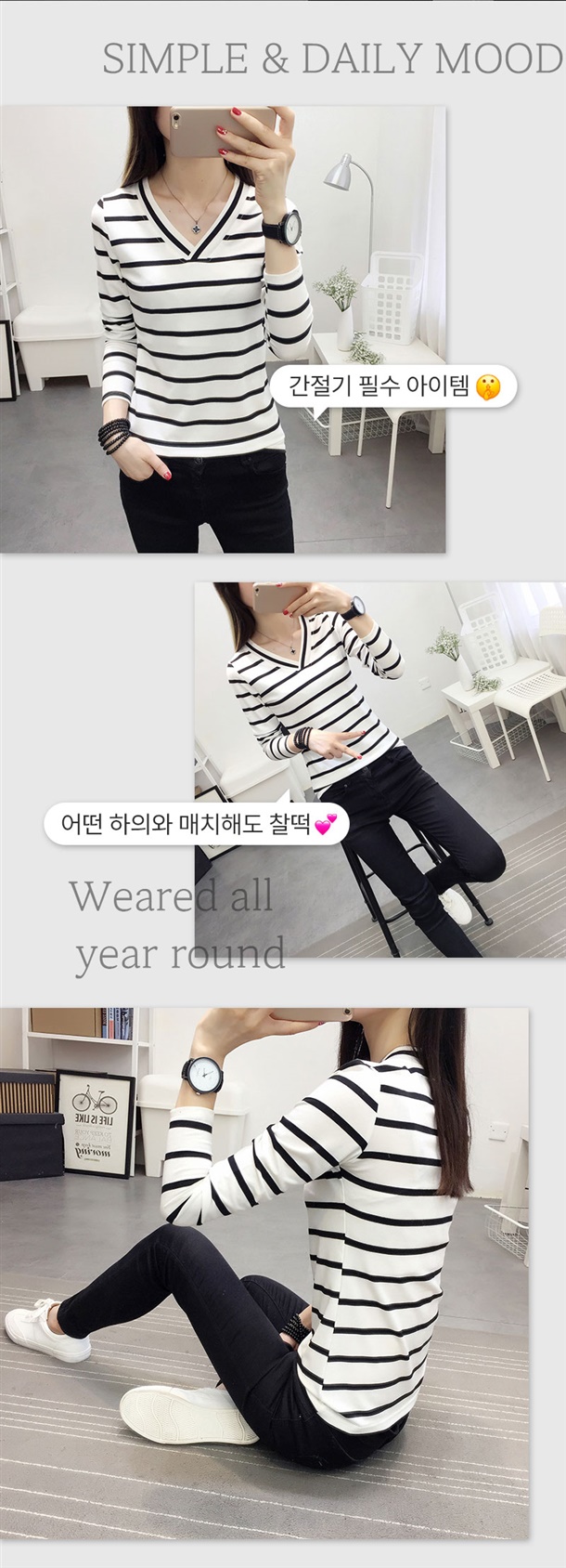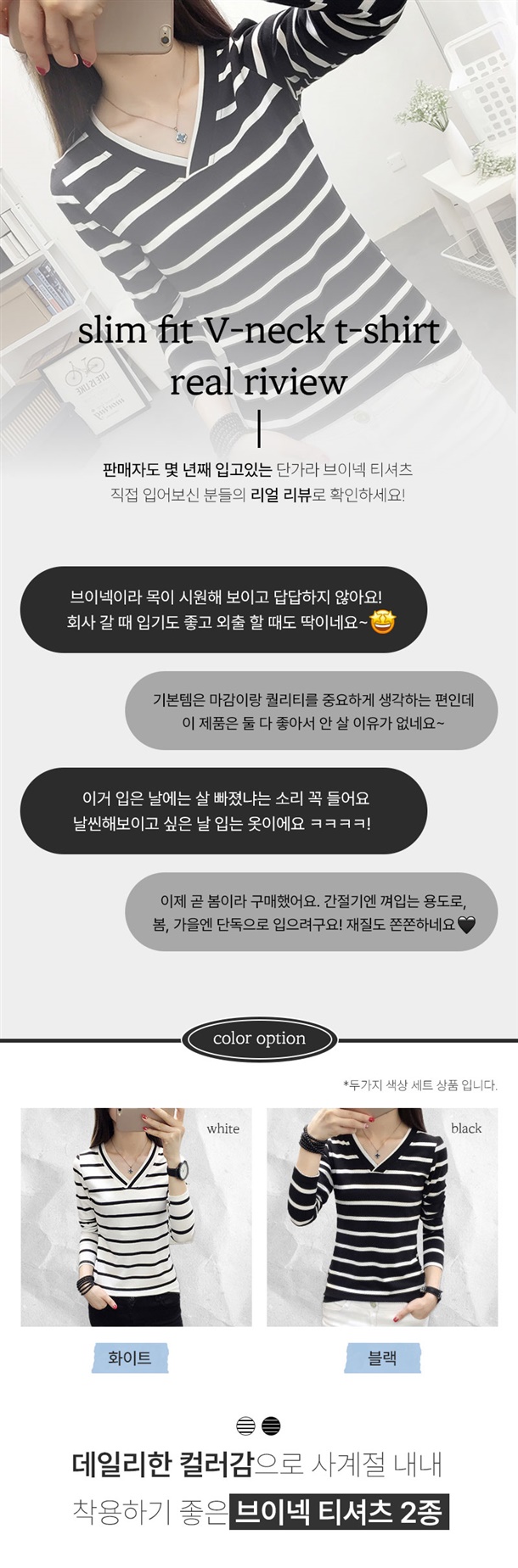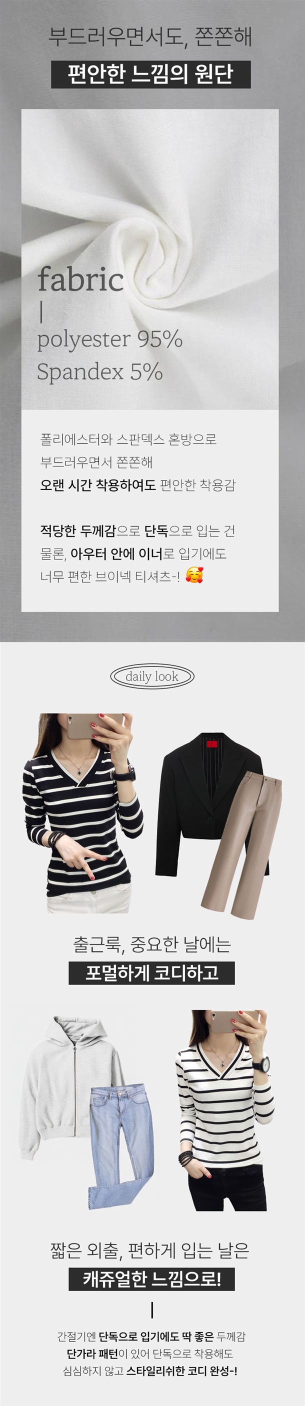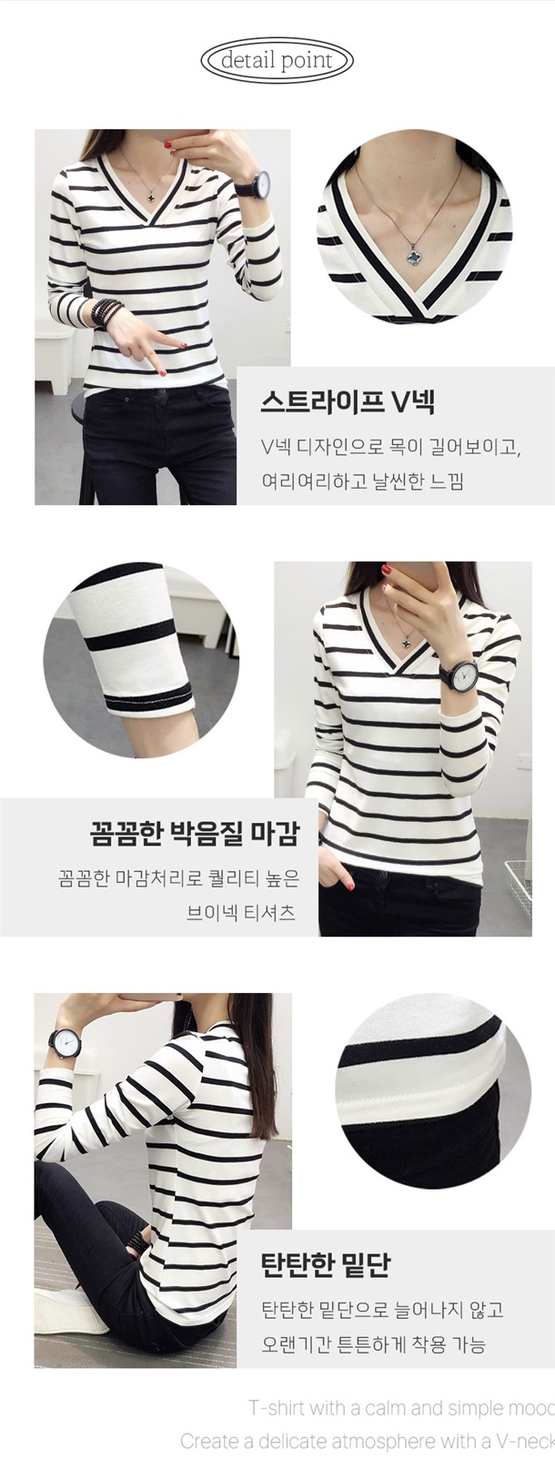 적당한 목 파임이 상체라인을 답답함 없이 날씬해 보이게 하고