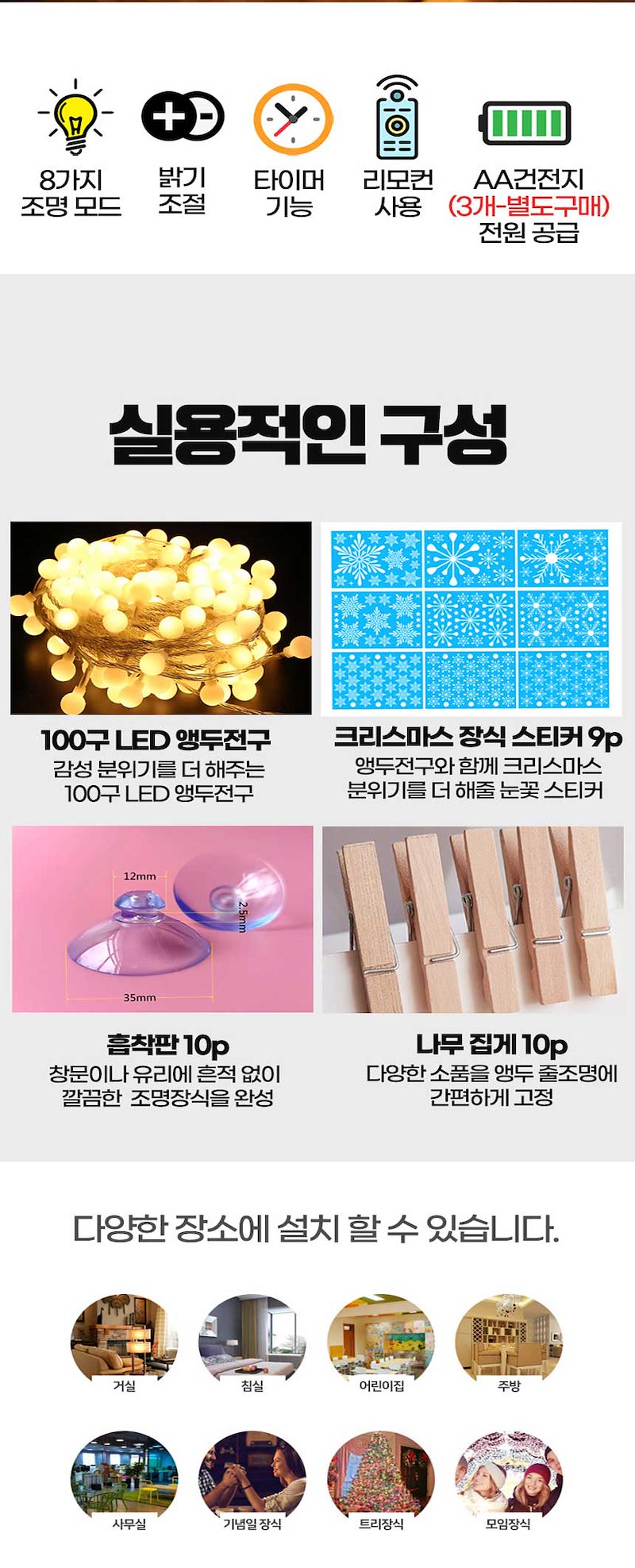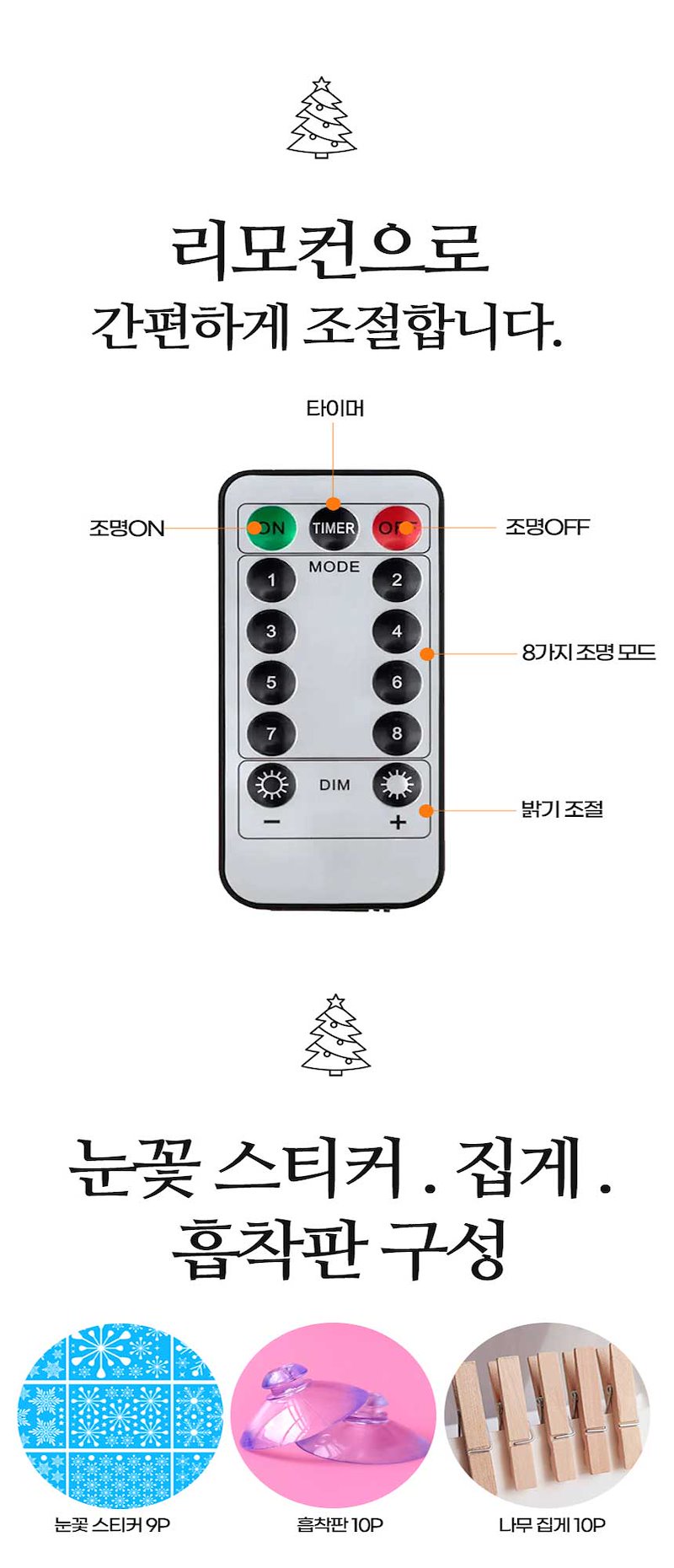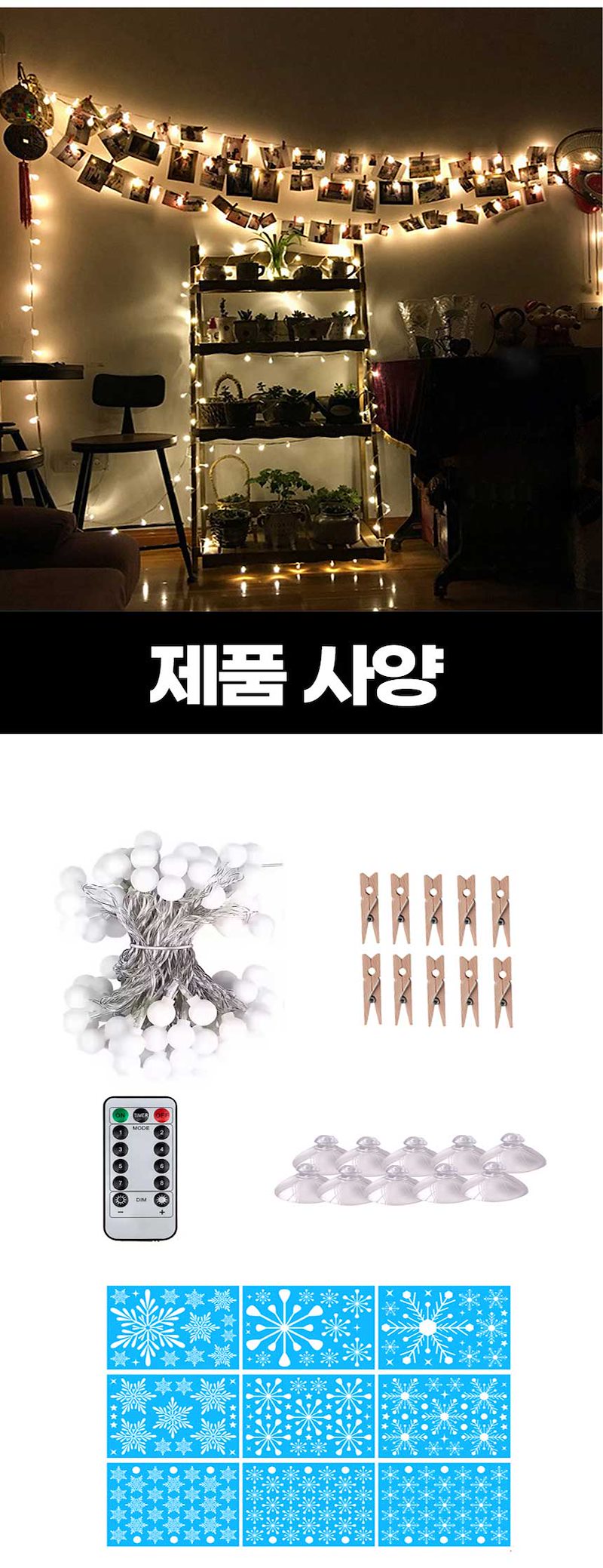 (앵구전구세트 - 앵구전구 1개, 리모컨, 나무집게 10개, 흡착판 10개, 눈꽃스티커 9개 /