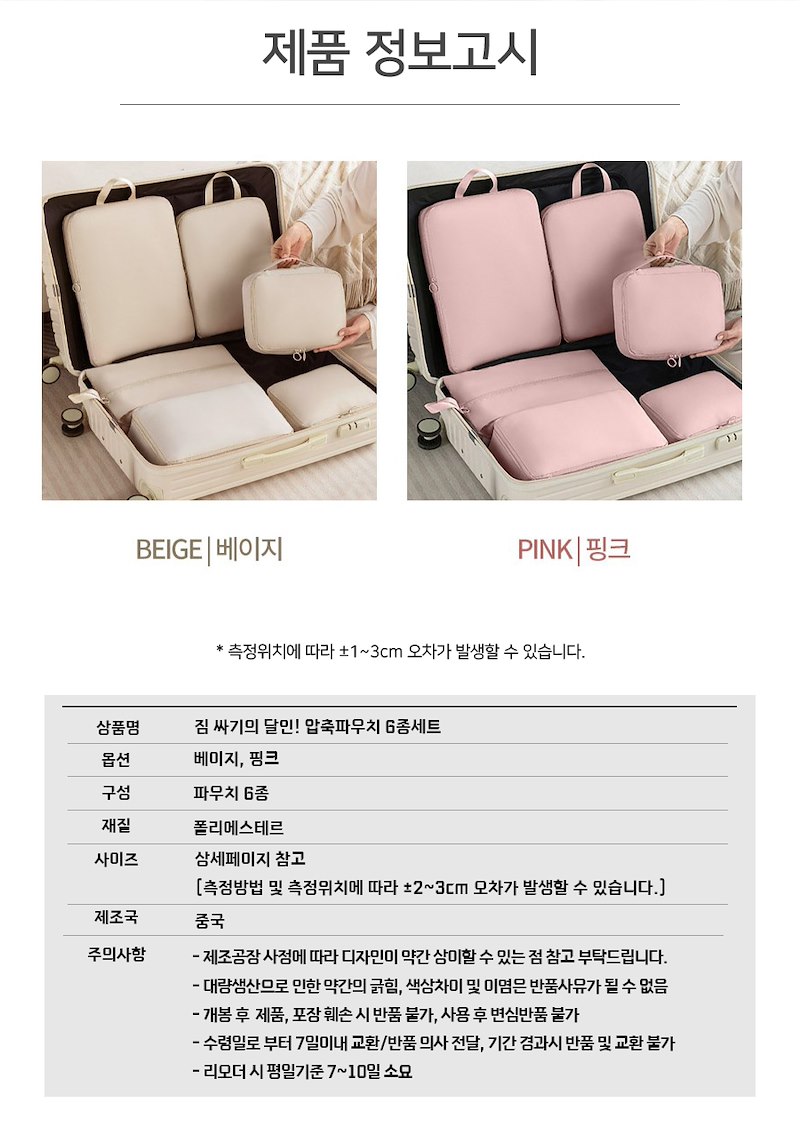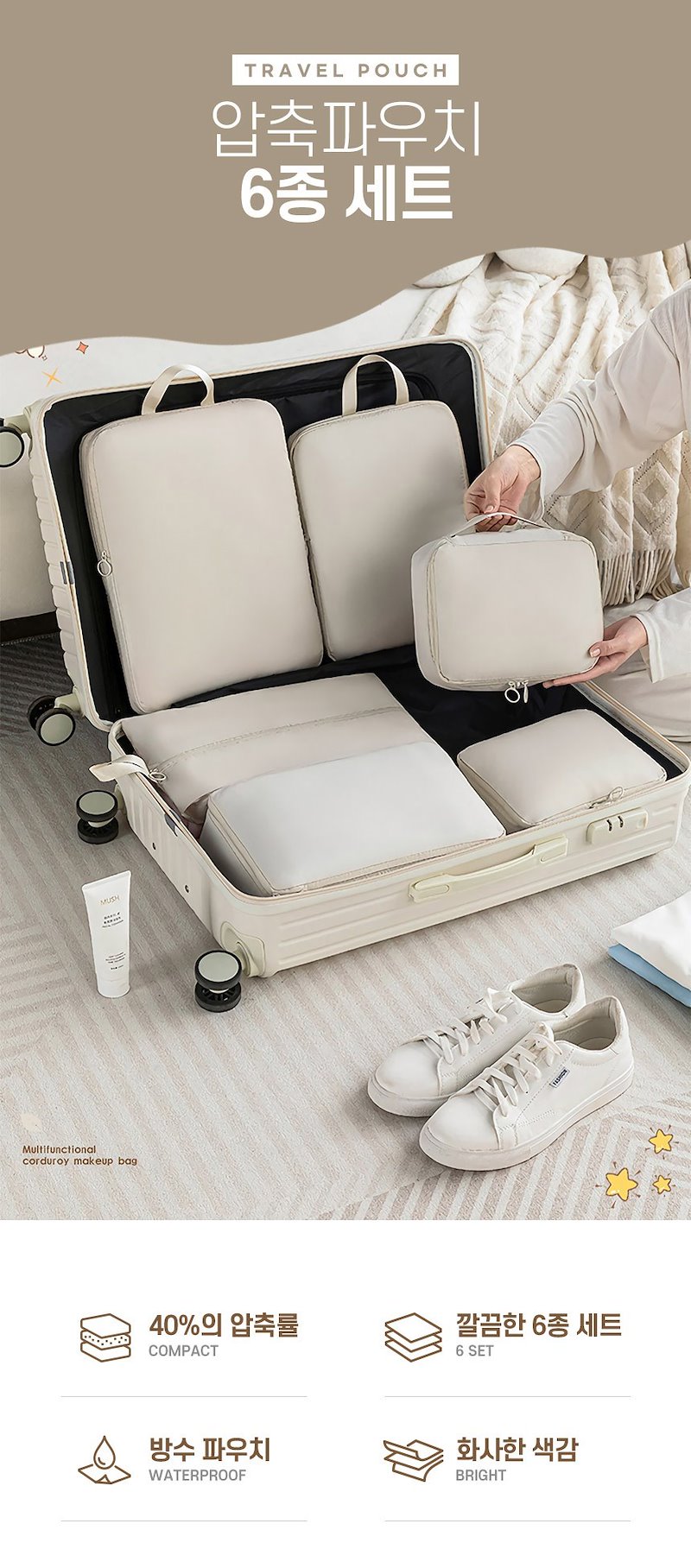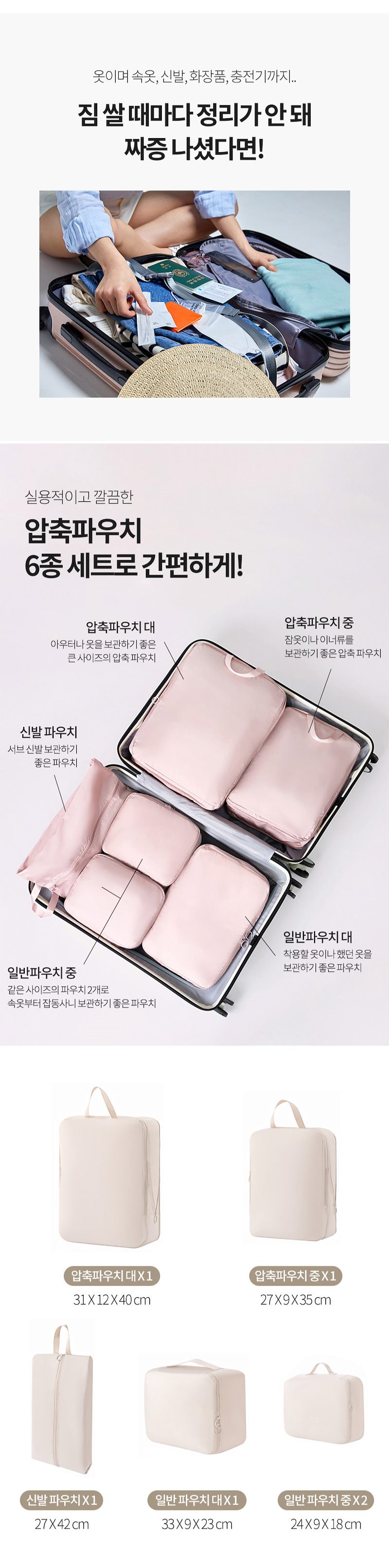 실용적이고 깔끔한 압축파우치 6종세트로 간편하게 정리하세요~