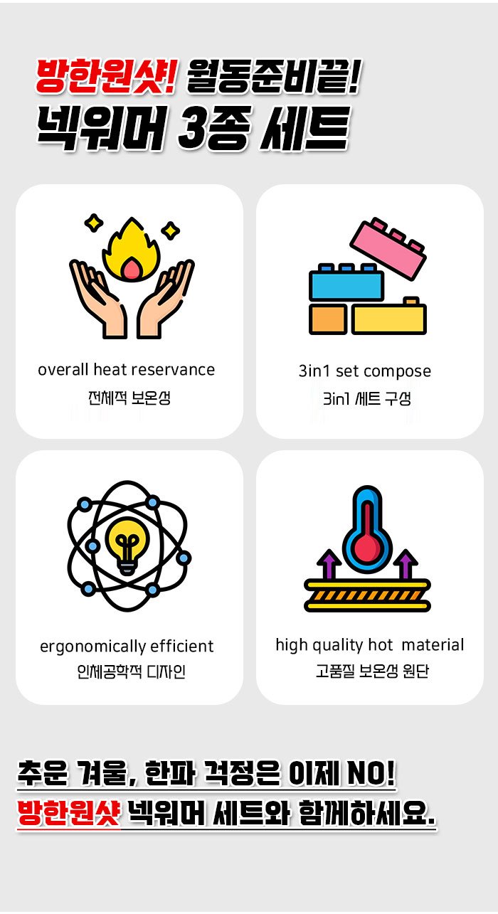 신축성 니트 소재와 융털 기모로 온도 2중 잠금!!