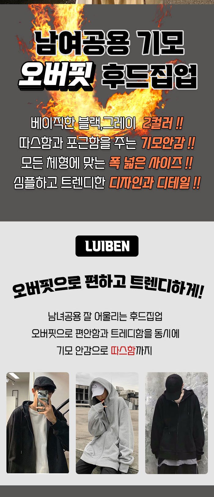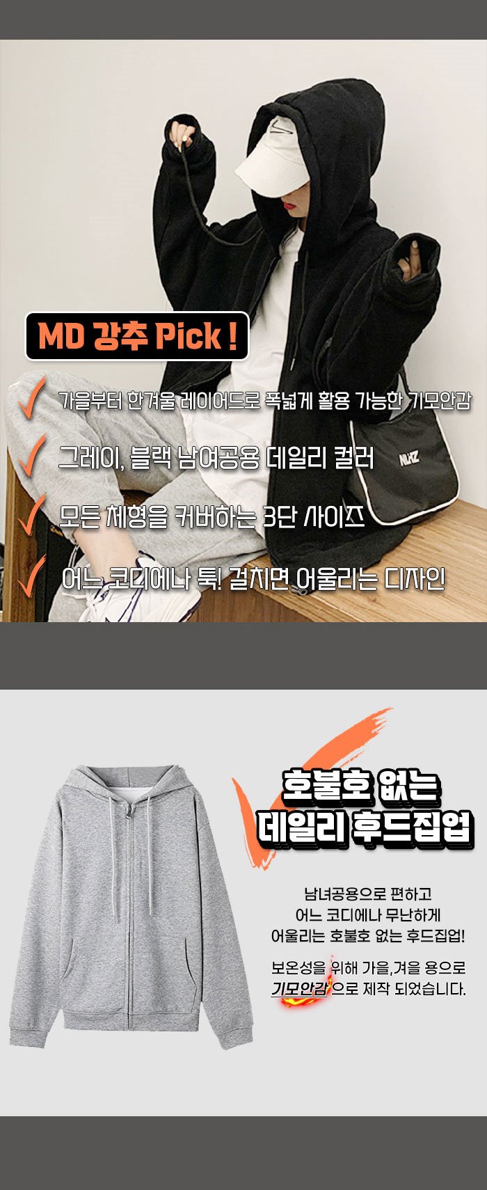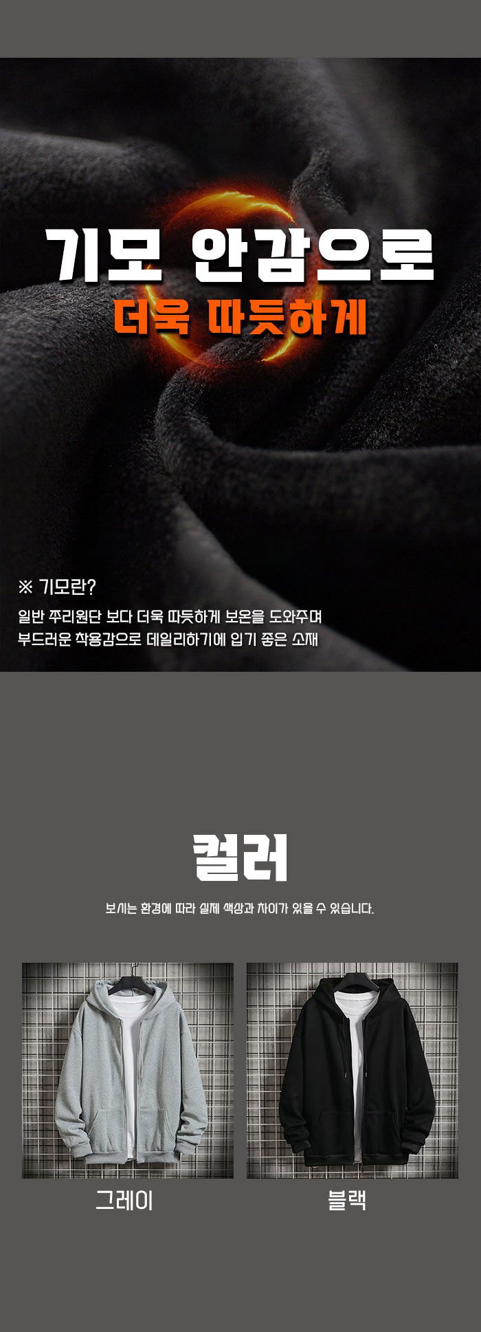 가을부터 한겨울 레이어드로 폭넓게 활용 가능한 기모안감