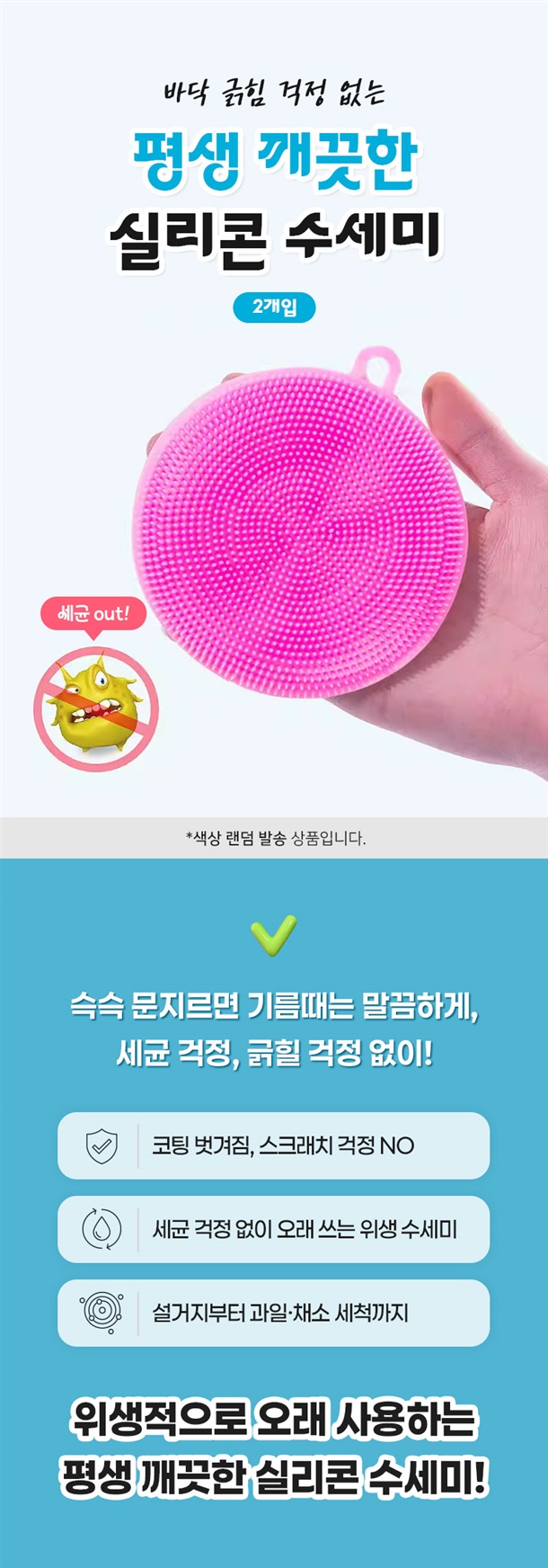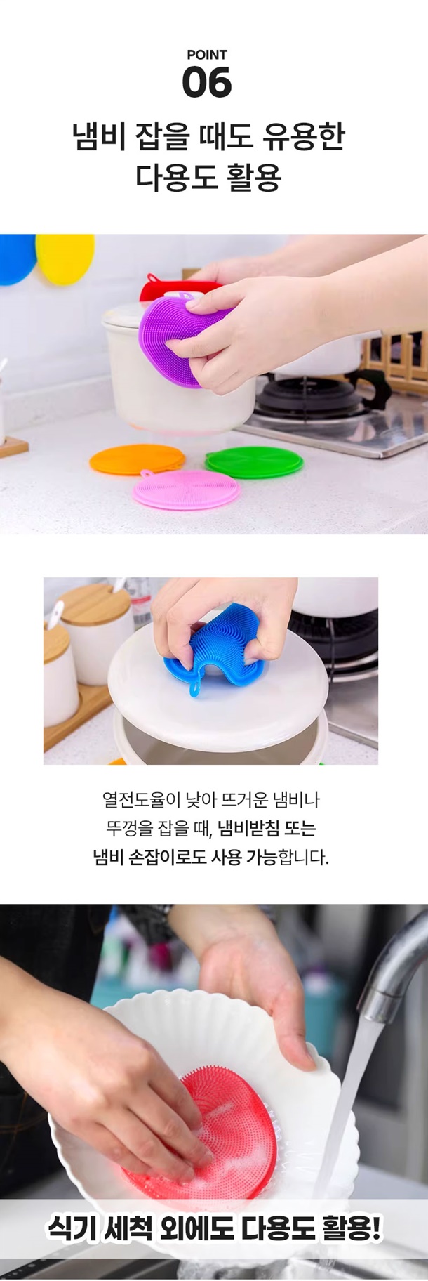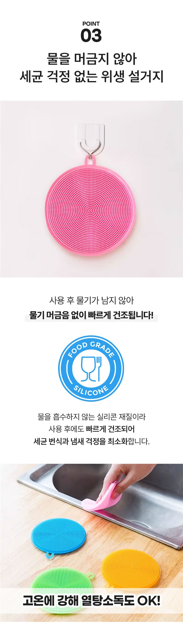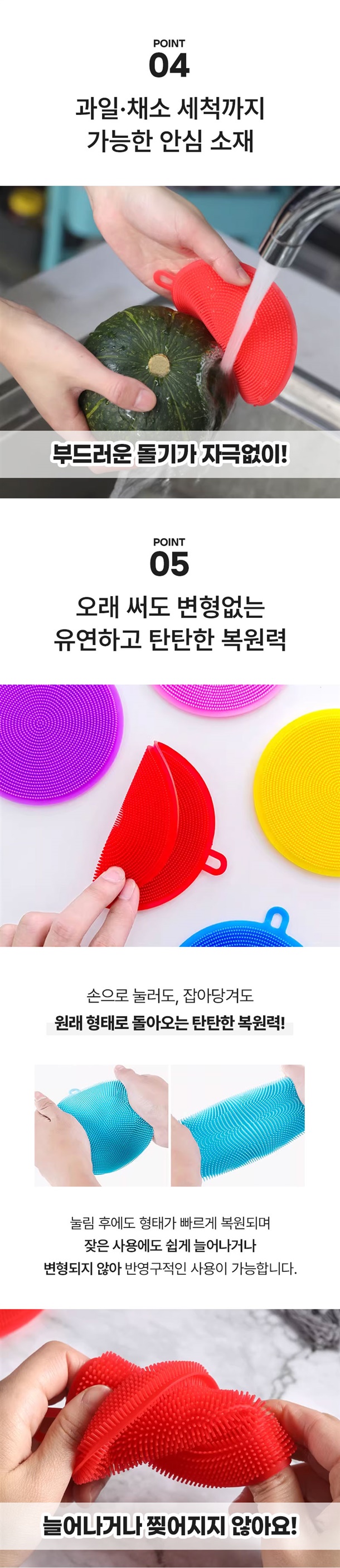 실리콘이라 물에 헹구기만 해도 깔끔하고
