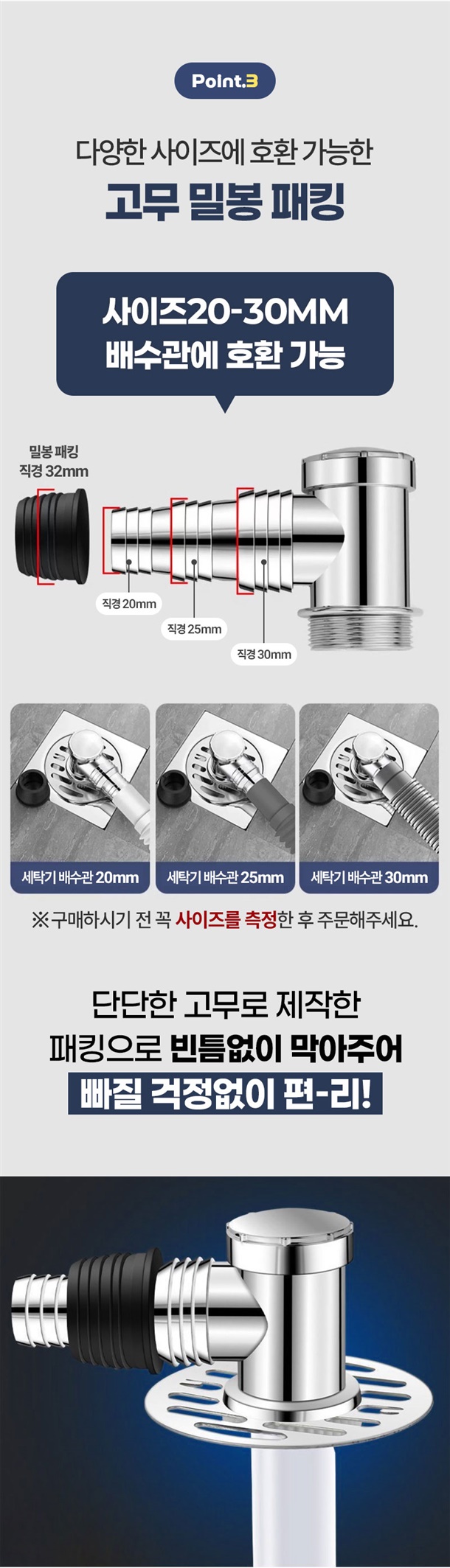 *구성품:배수구뚜껑(직경7.8cnm),고정볼트1개,밀봉패킹(20,25.30mm사용가능)