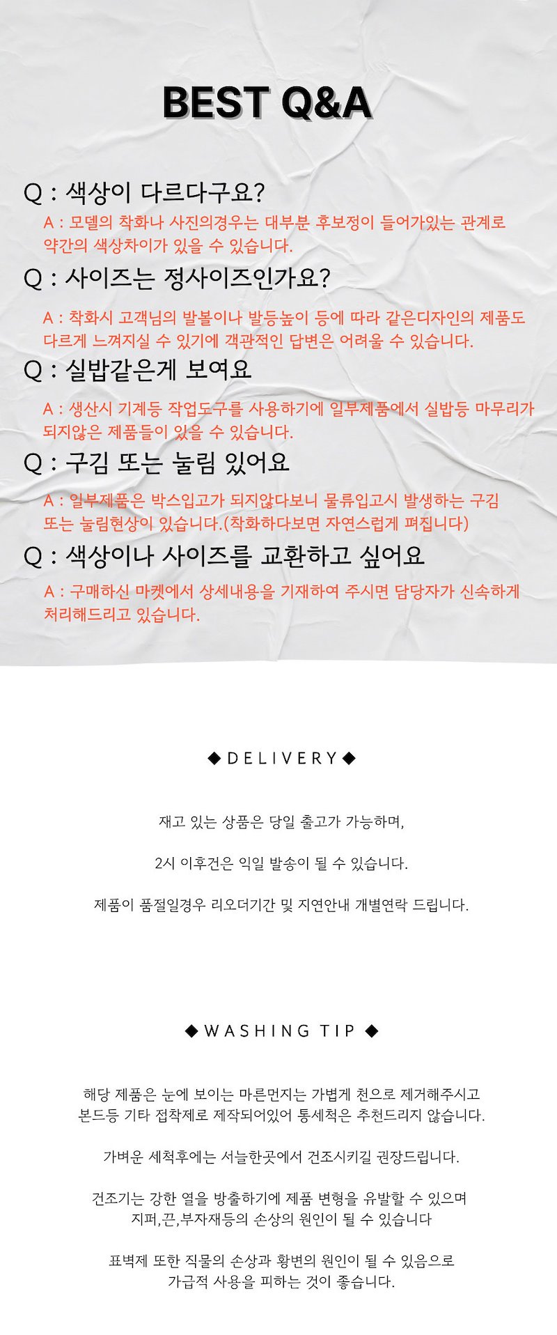 · 변심 교환/반품의 경우 왕복 택배비를 부담해 주셔야 합니다. (택배비 상품별 상이)