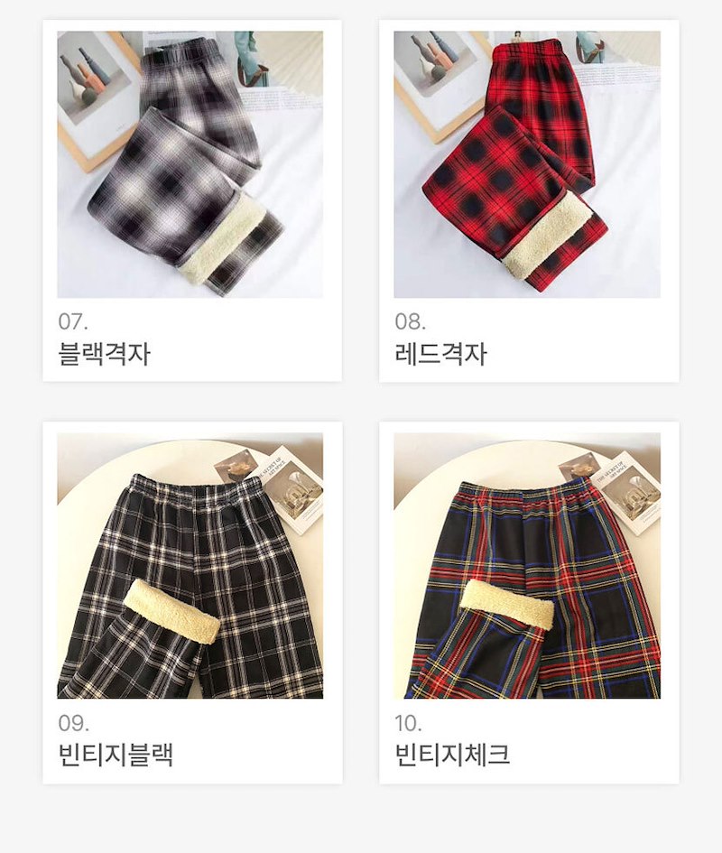 옐로우체크, 핑크체크, 블랙격자, 레드격자, 빈티지블랙, 빈티지체크