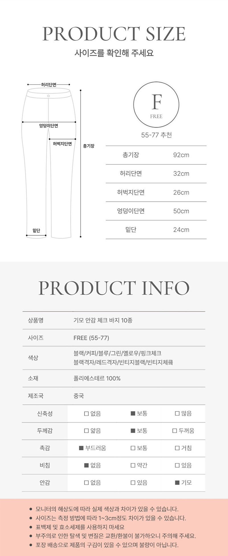 옵션 : 블랙체크, 커피체크, 블루체크, 그린체크,