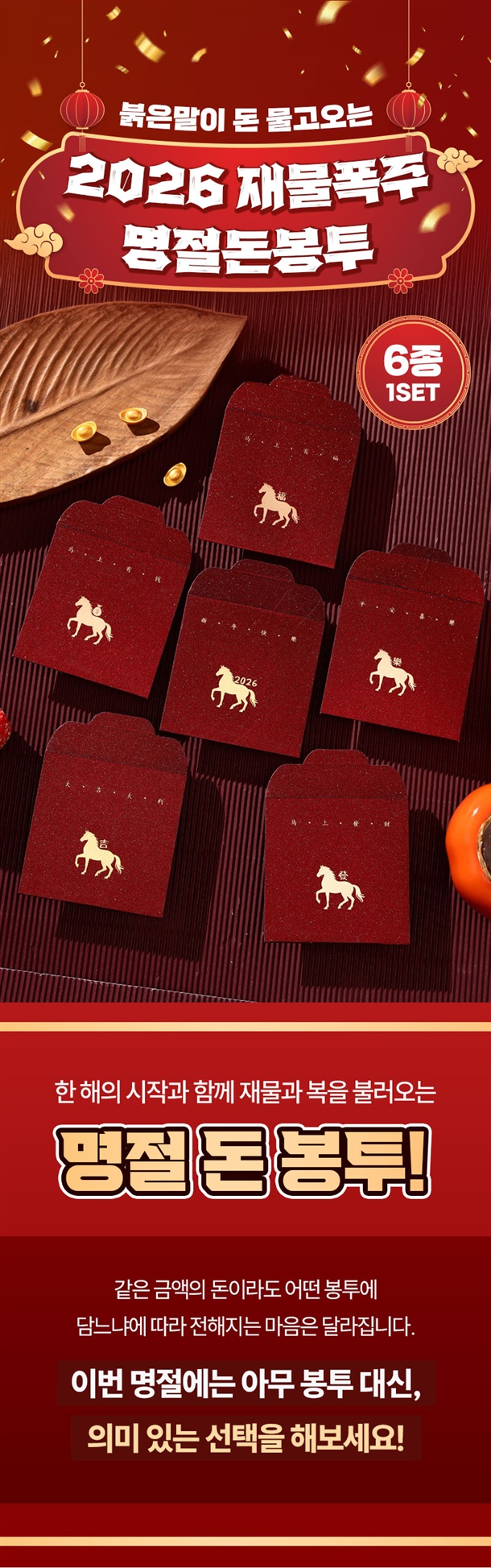 붉은말이 돈 물고오는 2026 재물폭주 명절돈봉투