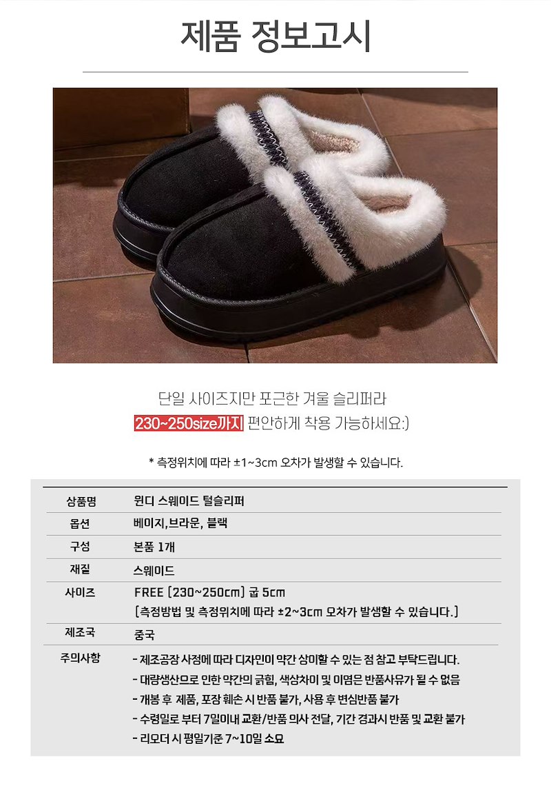 가벼운 무게의 스웨이드 털슬리퍼를 소개 드립니다~