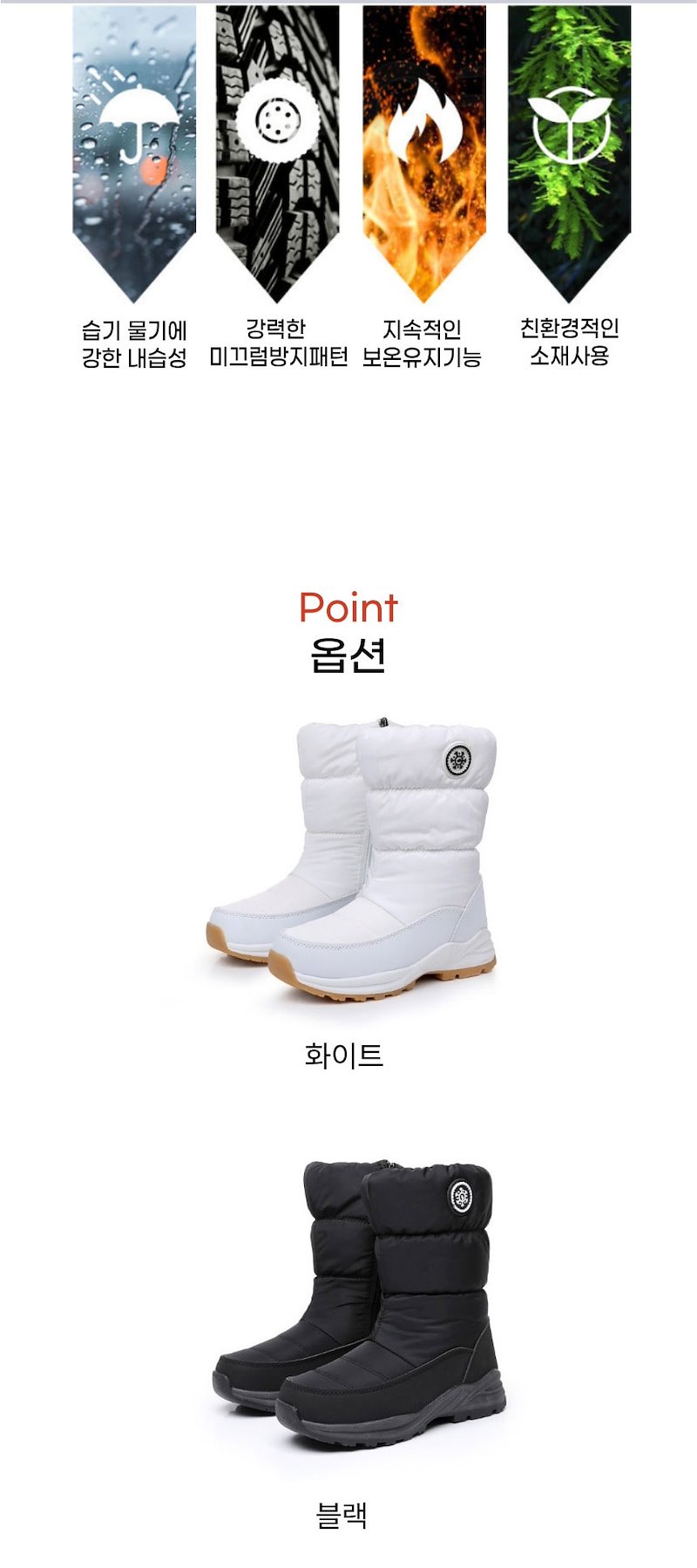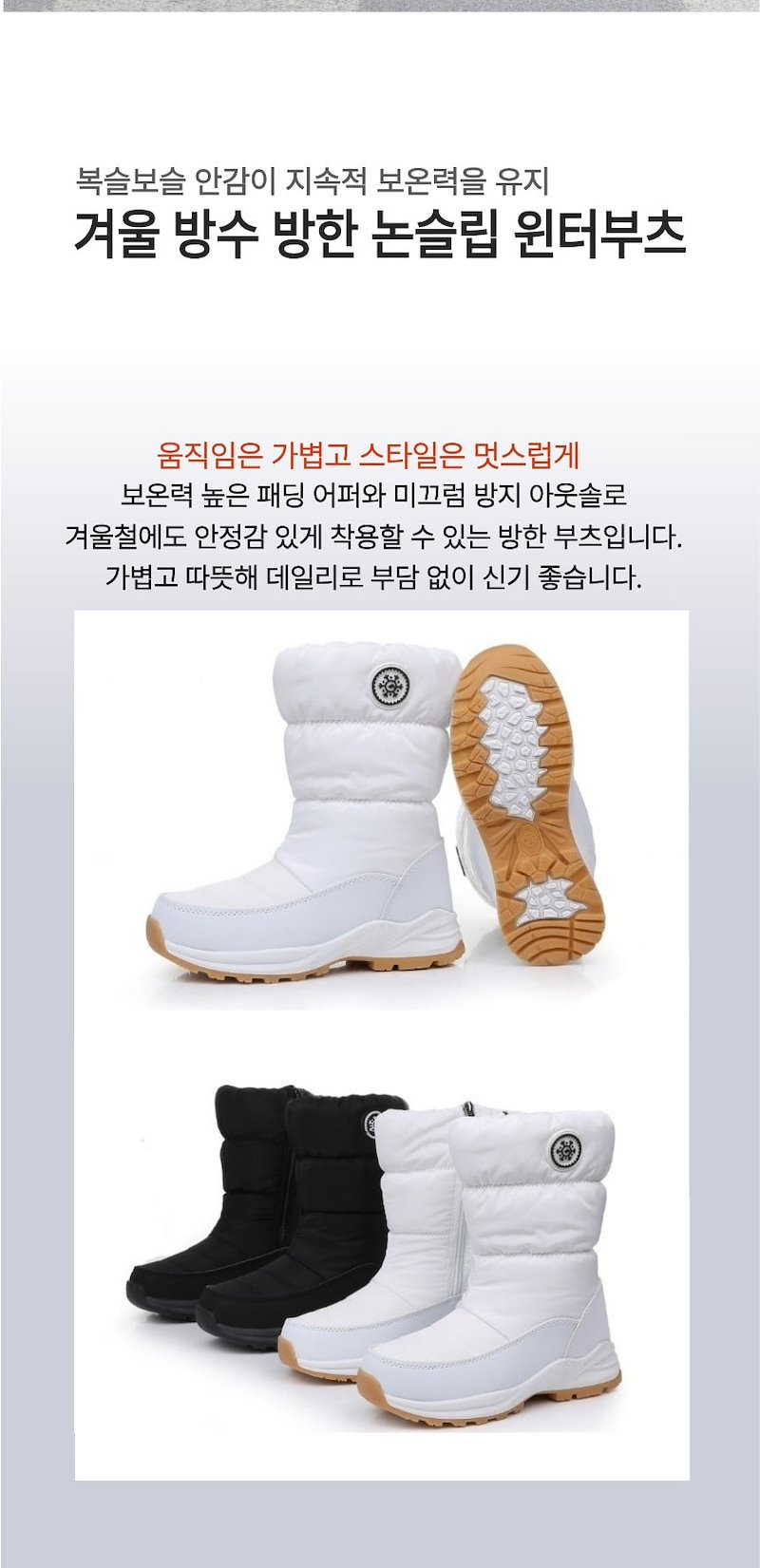보온력 높은 패딩 어퍼와 미끄럼 방지 아웃솔로
