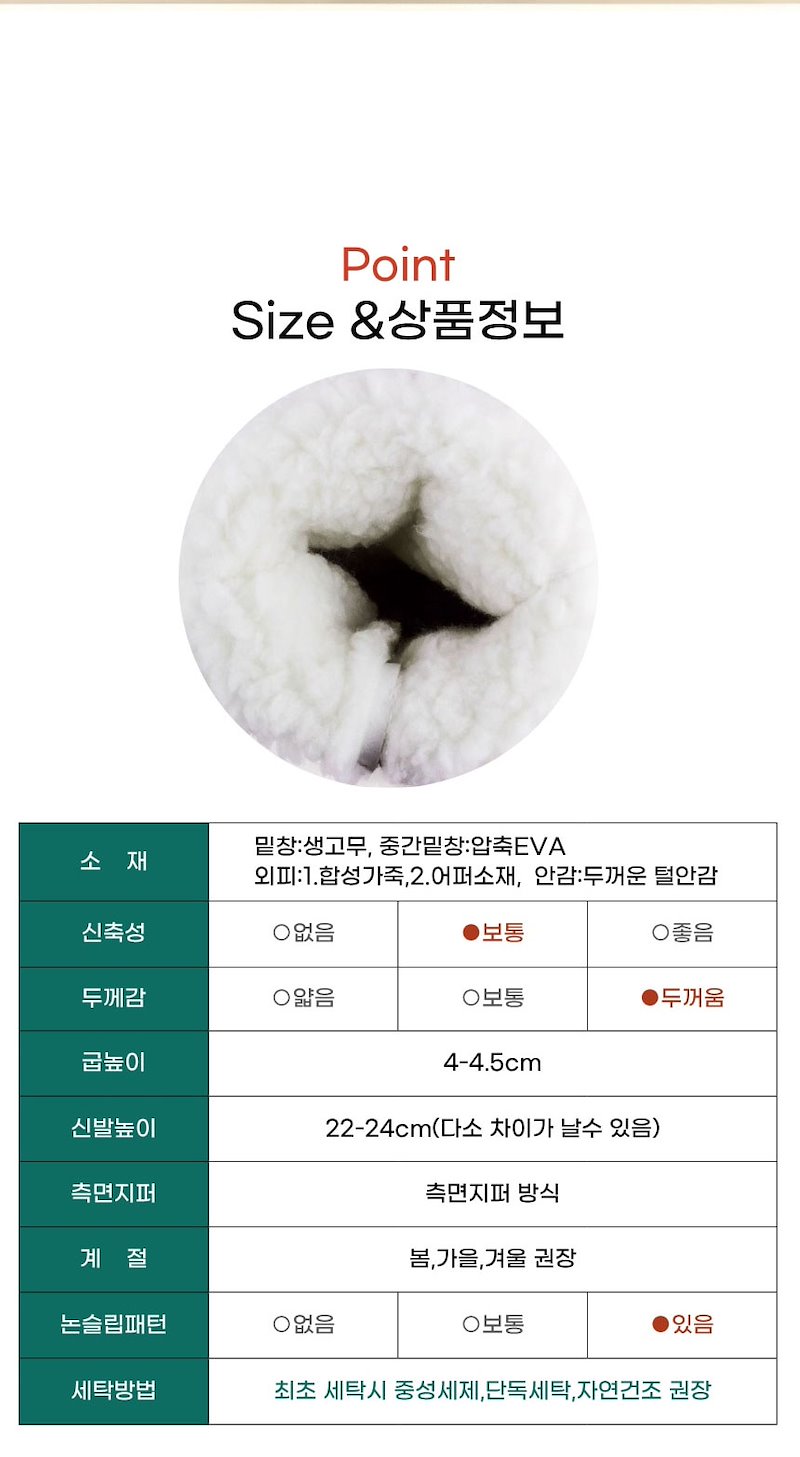 복슬복슬 안감이 지속적 보온력을 유지