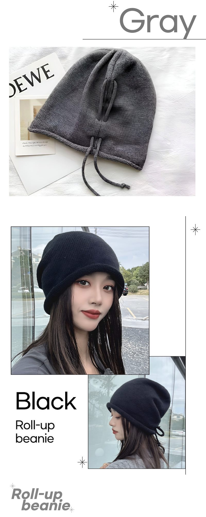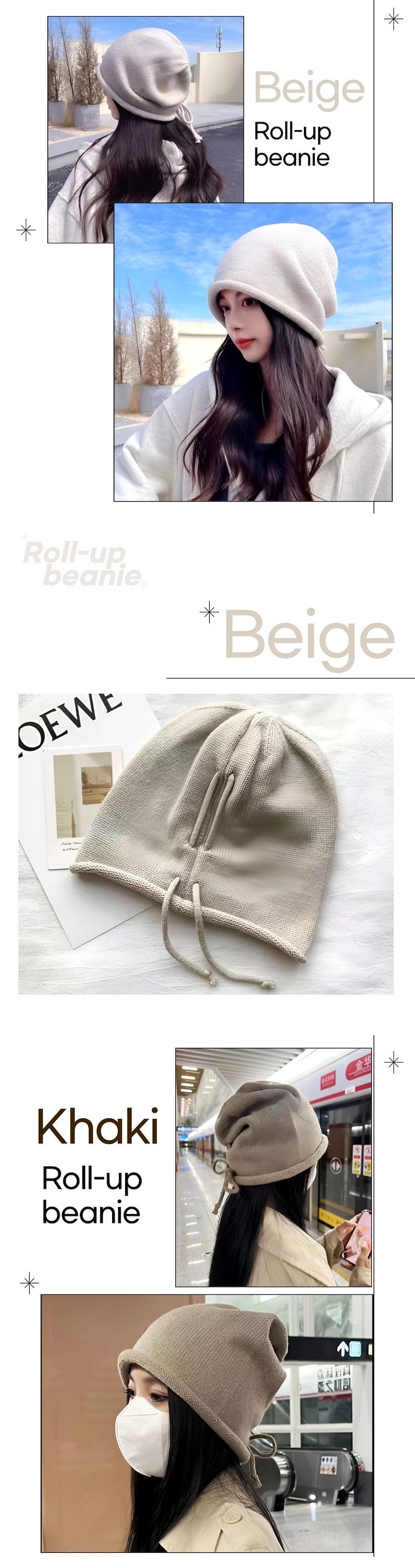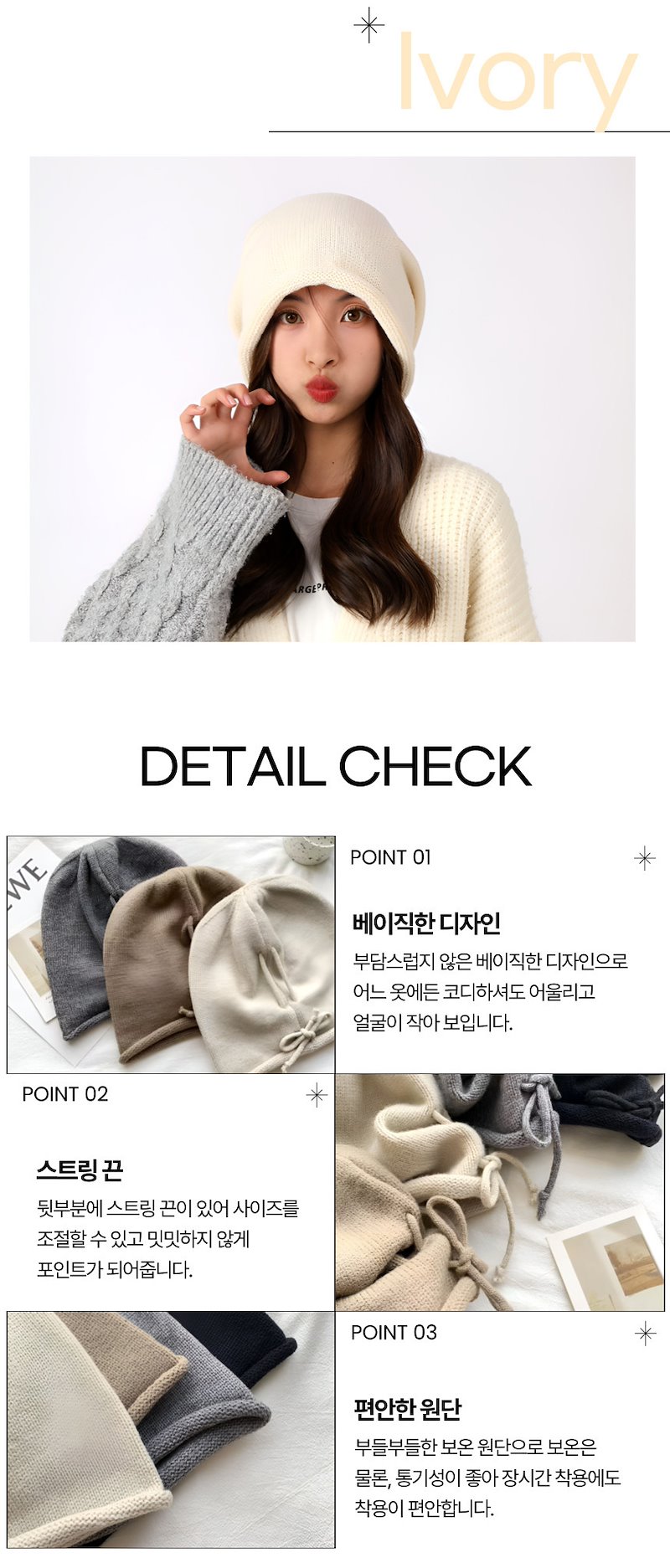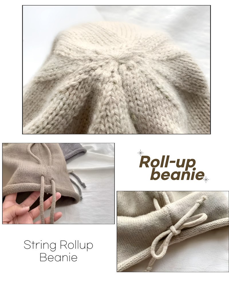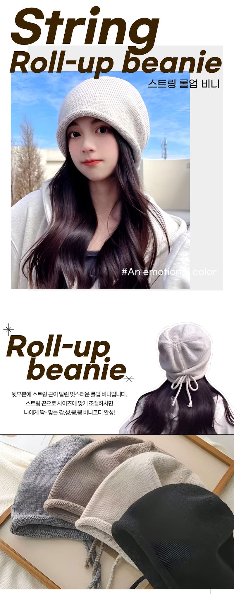 뒷부분에 스트링 끈이 달린 멋스러운 롤업 비니입니다!