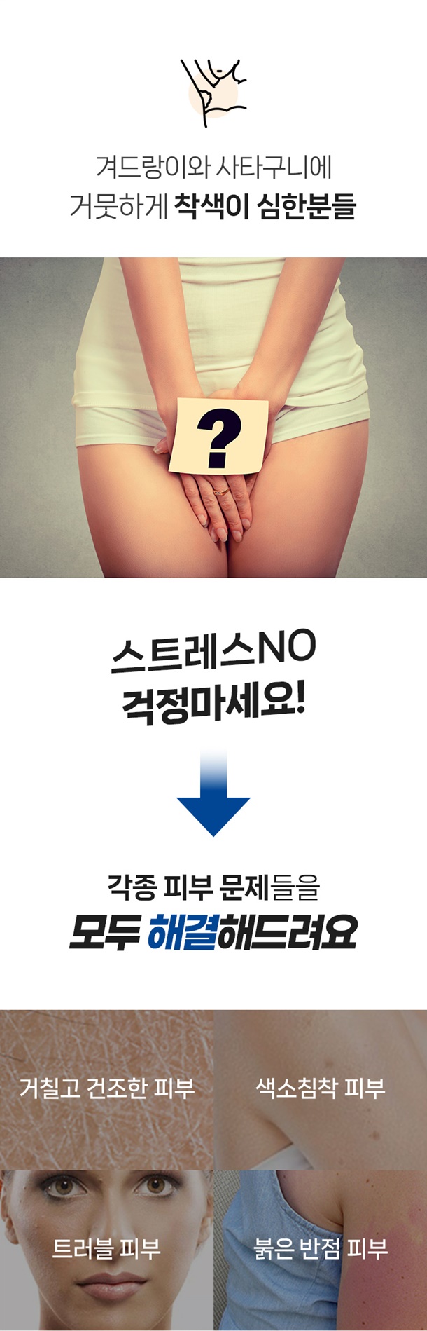 겨드랑이와 사타구니 쪽에 착색이 심해서