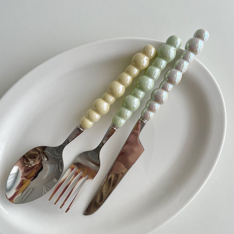 도자기 구슬 손잡이와 실버 스텐 조합으로