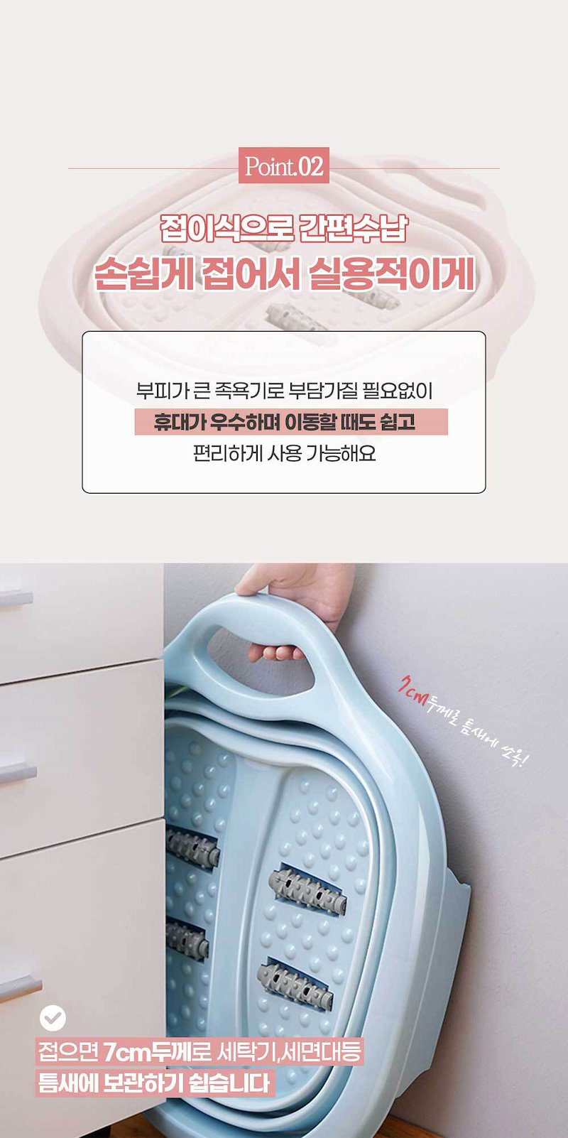 접으면 7cm두께로 세탁기, 세면대등