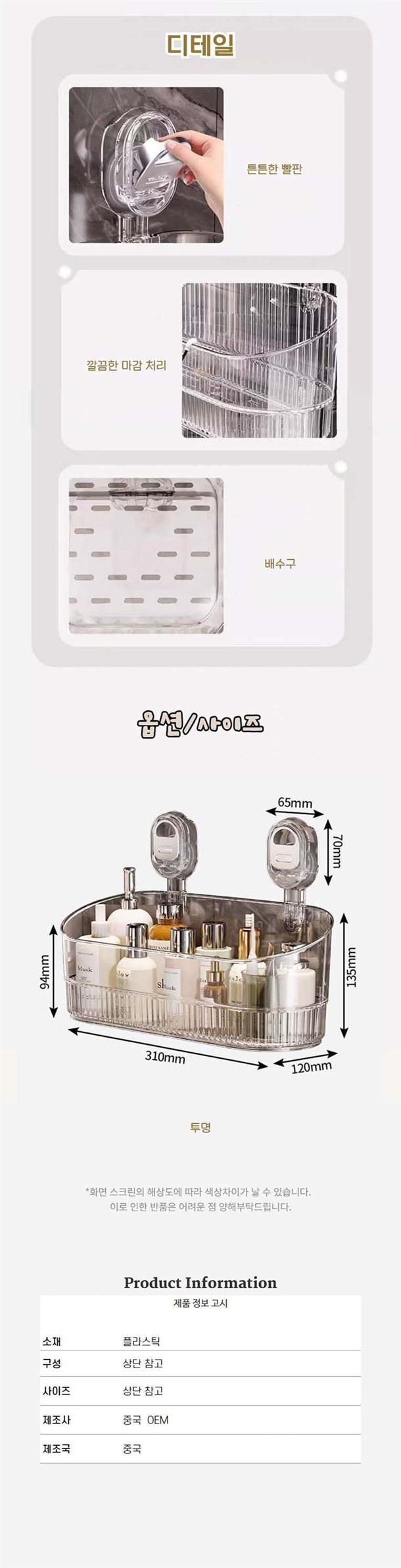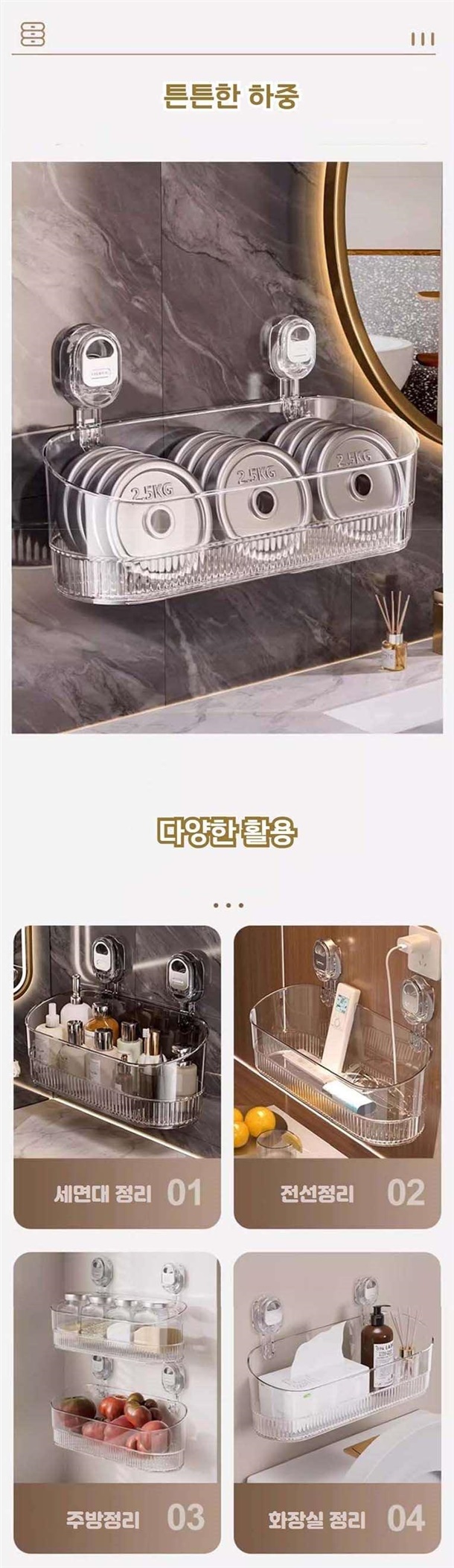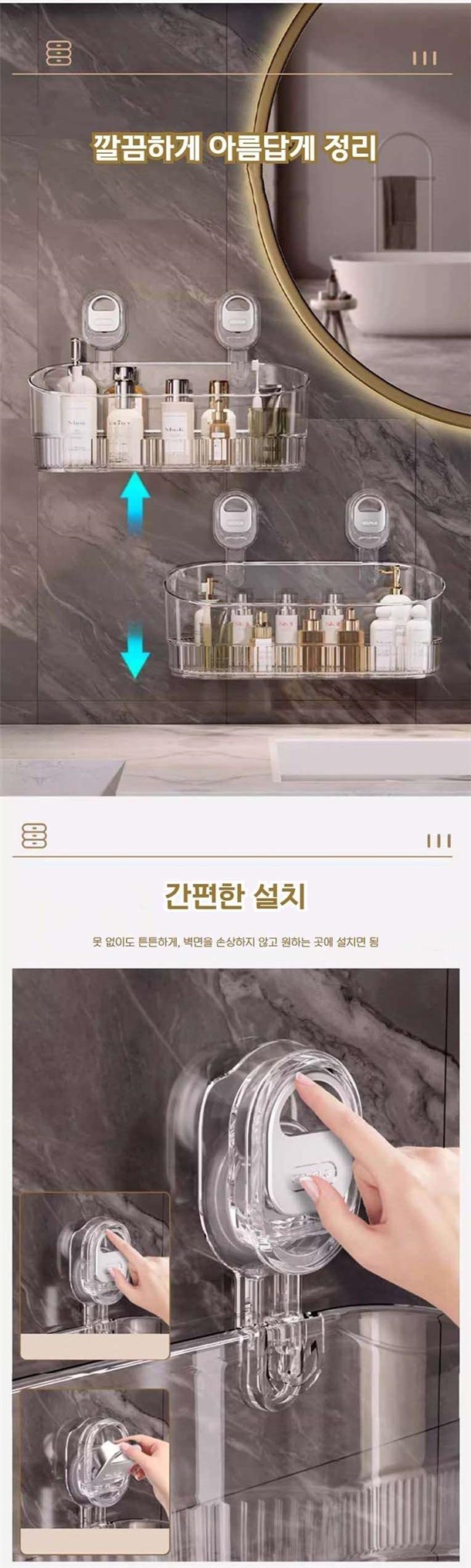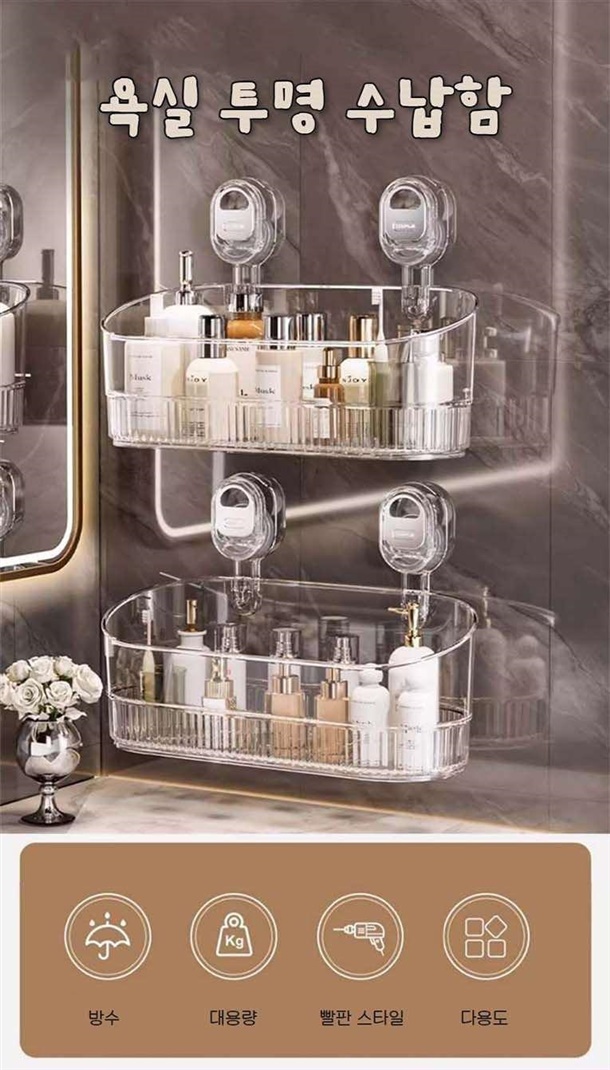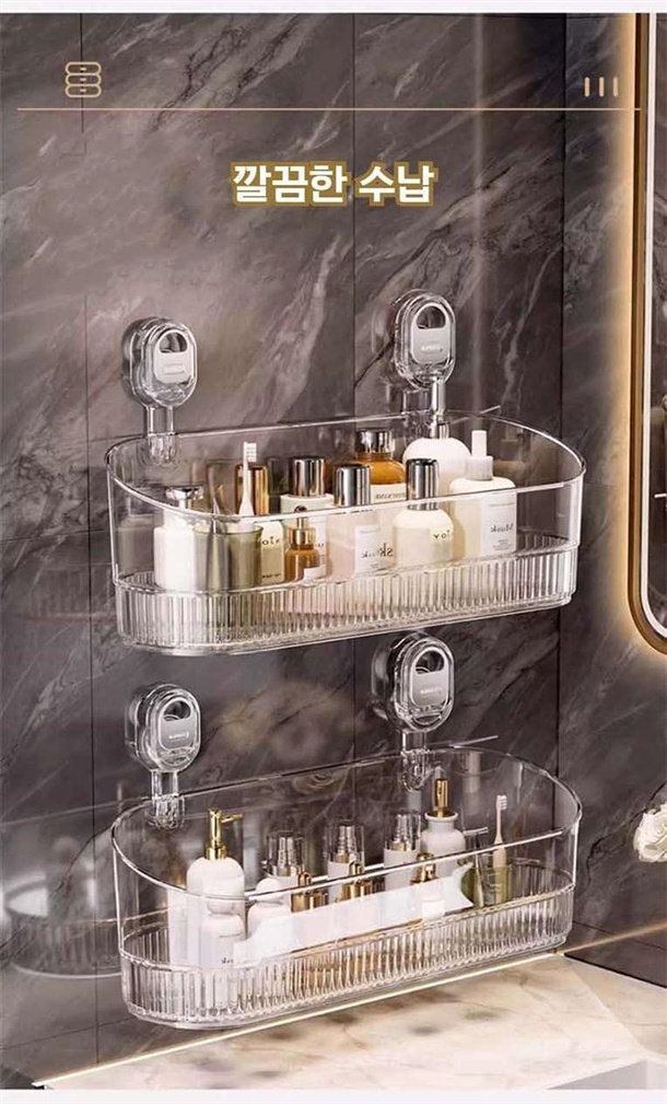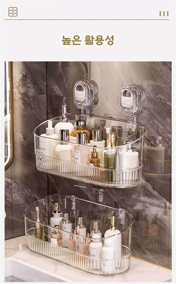 욕실 공간을 효율적으로 사용하고 싶다면, 견고하고 넉넉한 투명 수납함이 정답입니다!