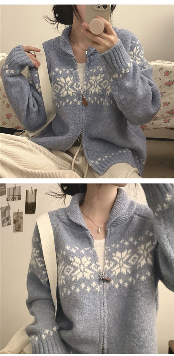 눈꽃 패턴이 포인트가 되어 데일리룩부터