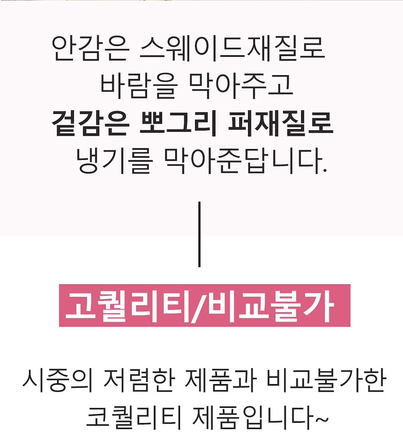 겉감은 뽀글이 퍼 재질로 냉기를 막아줍니다!
