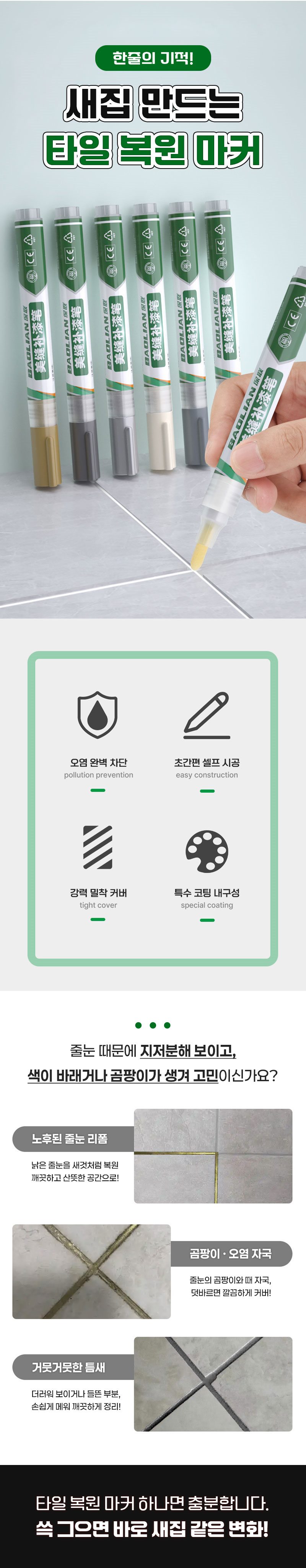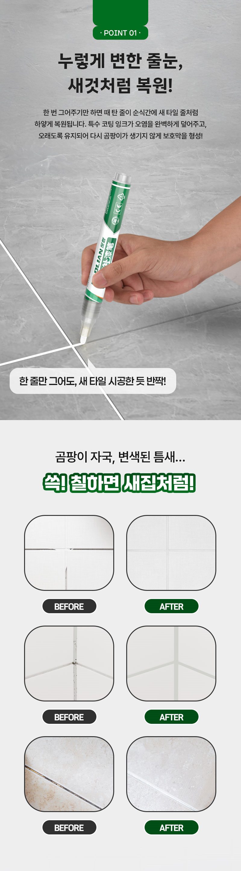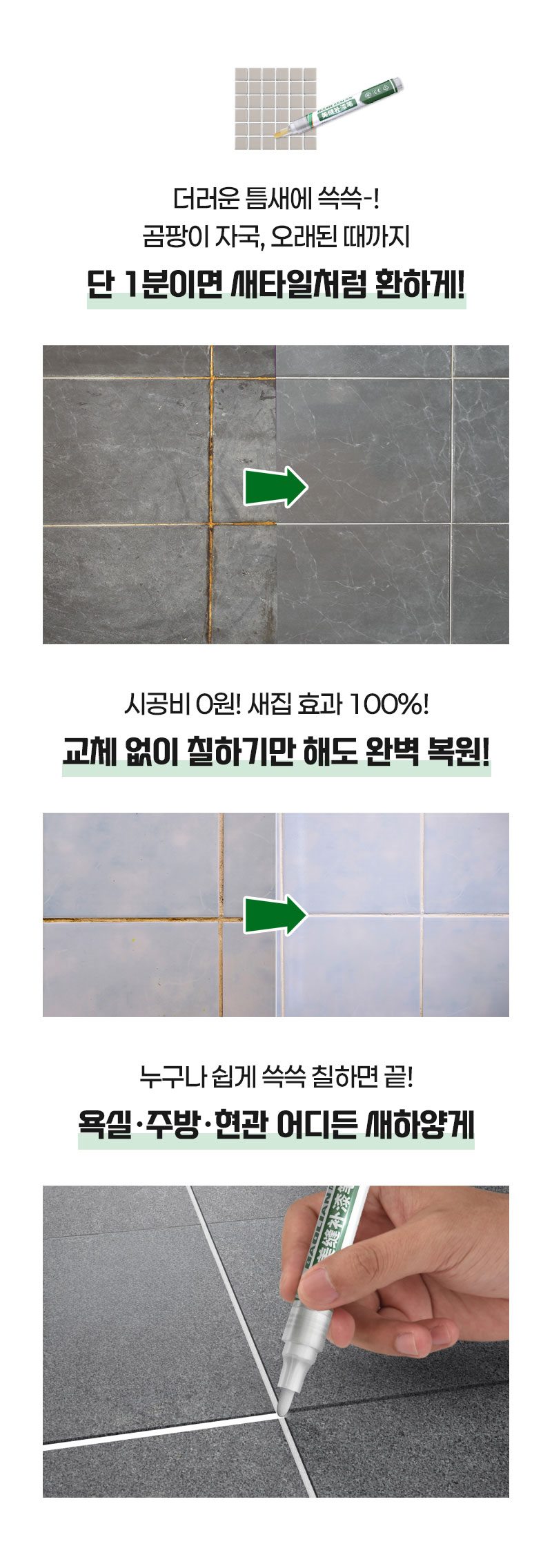 이 펜으로 한 줄 슥~ 그어주니까 새로 시공한 줄 알았어요ㅎㅎ