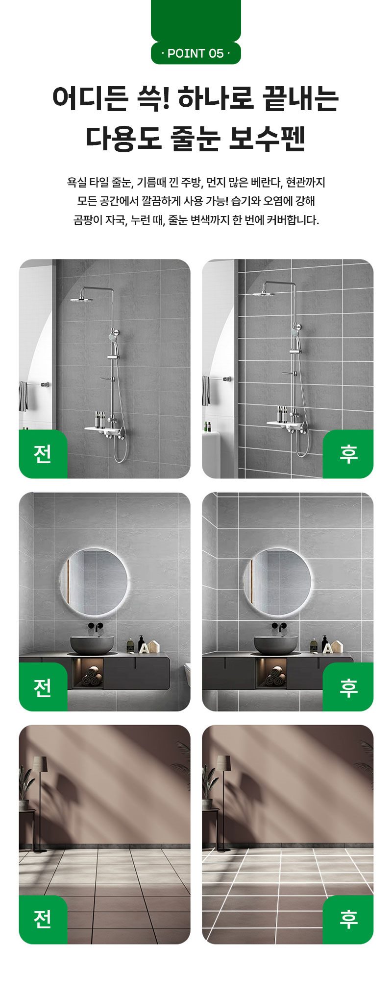 오래된 때나 곰팡이 자국도 완벽 커버 돼요!