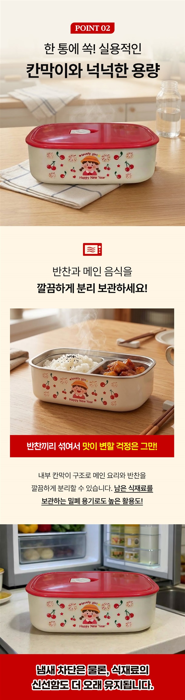 밥, 반찬, 과일 따로 담을 수 있어서